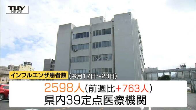 県衛生研究所によりますと、今月17日から23日までに県内39の定点医療機関から報告があったインフルエンザの患者数は、前の週より763人増加し2598人でした。