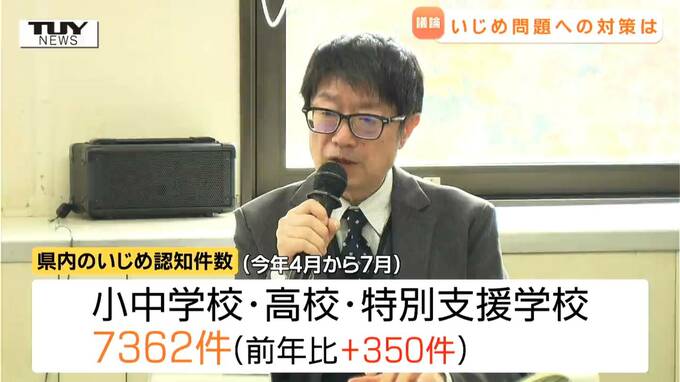 会議では、今年4月から7月までに県内の小中学校、高校、特別支援学校で確認されたいじめの件数が、去年の同じ時期よりも350件多い7362件になったことが報告されました。
