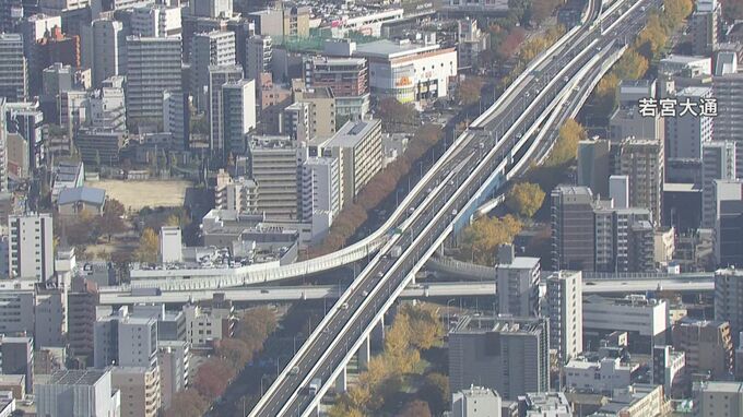 「若宮大通。今まさに見頃を迎えています。“黄色の一本道”ができています」
