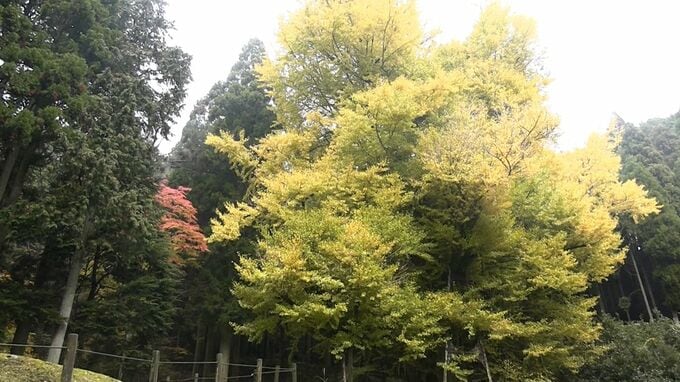 岡山県奈義町の寺で推定樹齢900年とされる大イチョウが見ごろを迎えています。きょう(26日)も多くの観光客らが訪れていました。