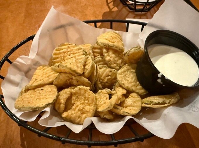 さらに、ピクルスのフライも紹介。「塩っ辛くてクリーミーなソースを付けながら食べるのですが美味しかったです」と、その味に満足げな様子を伝えています。