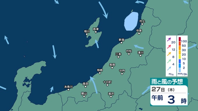 3. 新潟県内はあす27日夜のはじめ頃から28日にかけて落雷や竜巻などの激しい突風、急な強い雨などに注意【今後の雨と風のシミュレーション・26日午後9時更新】