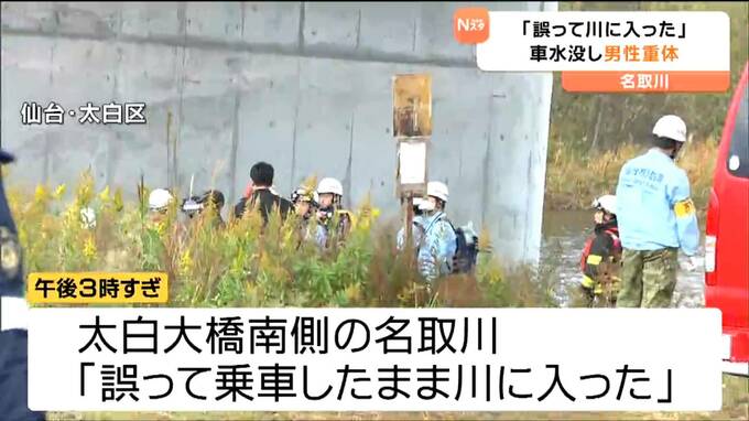 26日午後、仙台市太白区の名取川で車が水没し、運転していた男性が意識不明の重体となっています。