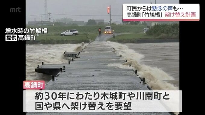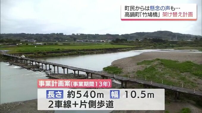 過去には転落事故も発生していて、高鍋町はおよそ30年にわたり、木城町や川南町と一緒に国や県へ架け替えを要望してきましたが、実現には至っていません。
