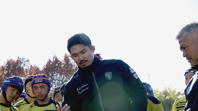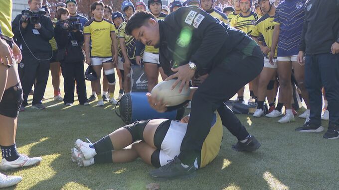 続いて全国大会出場を決めたラグビー部に、自身の代名詞「ジャッカル」を直伝しました。