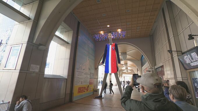 名駅のシンボル・ナナちゃんは、発光する液晶を着ていて、11月26日から12月9日まで、年齢にちなんで思い出の52着に早着替え。思わず足を止め、カメラを向ける人も…。