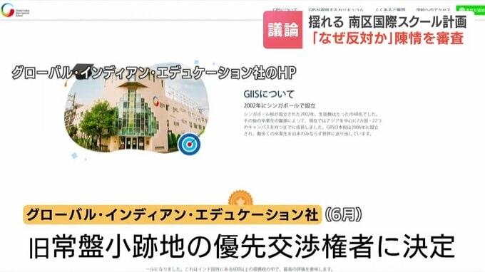 議題は、札幌市南区で4年前に閉校した旧常盤小学校の跡地に計画されているインターナショナルスクールの建設についてです。