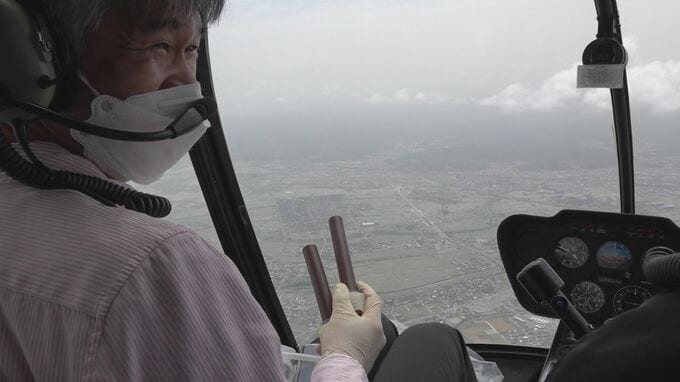 毎年のように、黄砂が飛ぶ4月から5月を中心にヘリコプターを飛ばして上空の黄砂を採取しています。地理的に、能登半島は大陸の黄砂を採取しやすい地点とのことです。