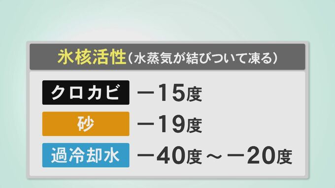 ところが、おおよそクロカビは-15度以下、砂は-19度以下で水蒸気が凍り付き雲のもとになります。