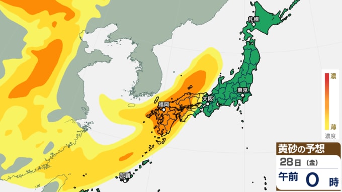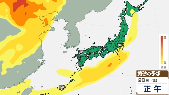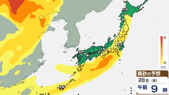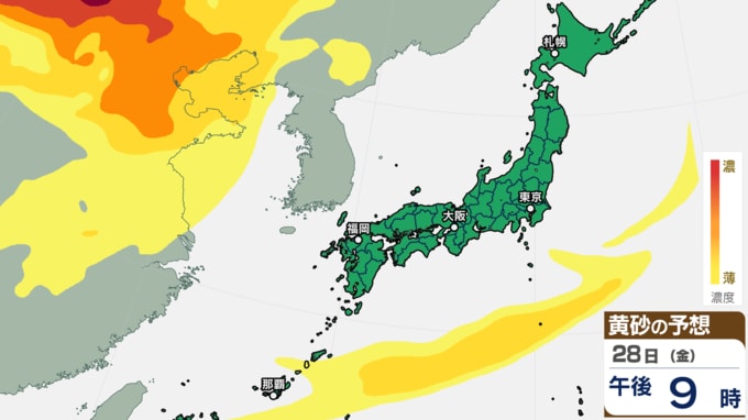 【黄砂情報】日本の広い範囲で黄砂か【27日(木)~29日(土)黄砂シミュレーション】黄砂が予想されるエリアと時間帯