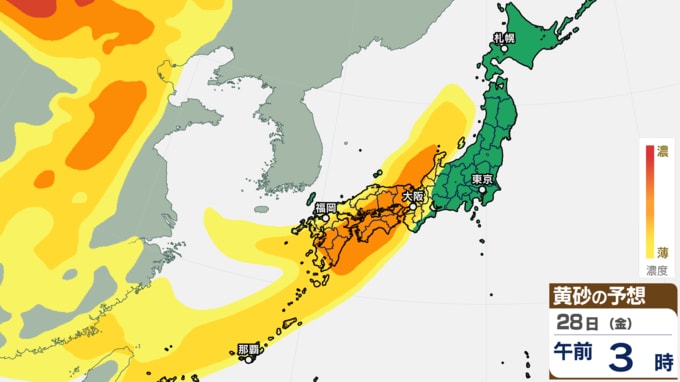 3. 【黄砂情報】日本の広い範囲で黄砂か【27日(木)~29日(土)黄砂シミュレーション】黄砂が予想されるエリアと時間帯