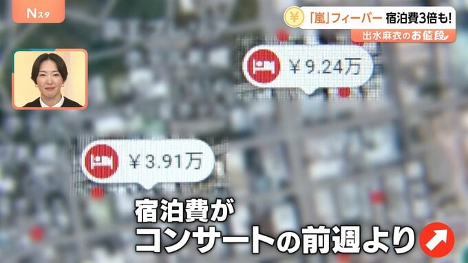 「こちらのホテル、コンサートの前の週と比べて価格が3倍以上になっています」