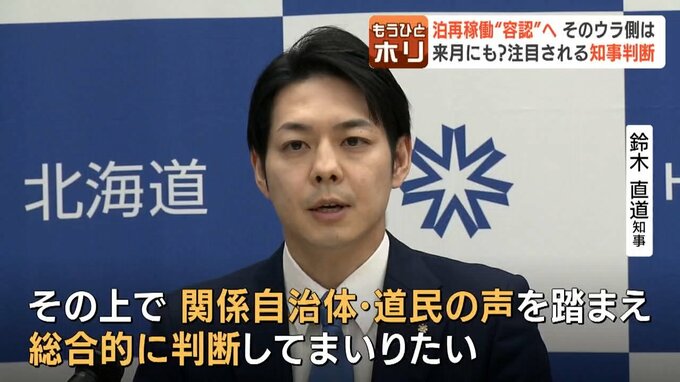 「泊原発の再稼働に関しては、本日開会した第4回定例道議会で議論していただきたい。その上で、関係自治体の意見、道民の声を踏まえて総合的に判断してまいりたい」