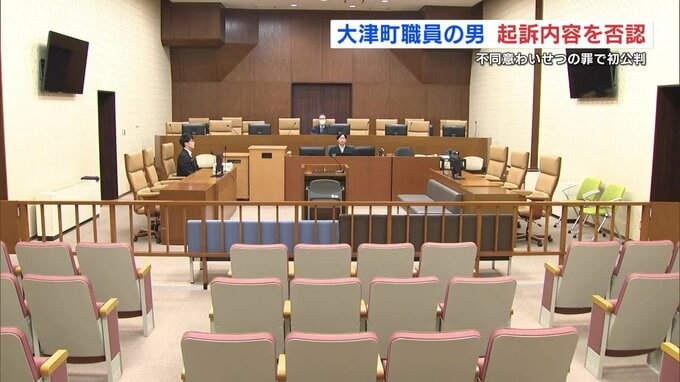 知人女性に無理やりキスをした罪に問われている熊本県大津町職員の男の初公判が熊本地方裁判所で開かれ、男は起訴内容を否認しました。