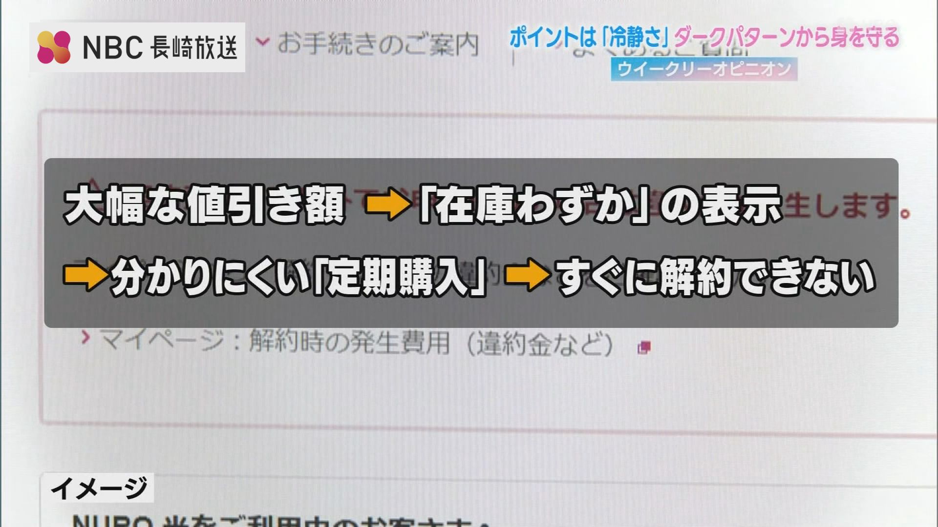 「いわゆる一つの手口ではなくて複数の手口を組み合わせて使っていると、悪質性が高いと言えますし最もやっぱり被害が大きいもの」例えば本当かどうかわからない大幅な値引き額を表示し、在庫わずかのような形で消費者を焦らせ、購入画面に分かりにくく定期購入と書いている。さらに解約の仕方も必要以上に複雑にしているといったケースが考えられます。