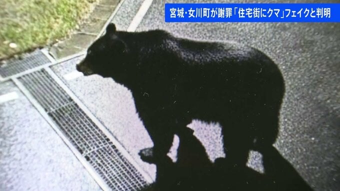 宮城県女川町の公式Xに投稿された1枚の画像。大きなクマが住宅街にたたずむ様子が写っています。よく見ると、影の部分などがやや不自然に見えます。女川町によりますと、投稿後、フェイク画像だったと作成者本人か…