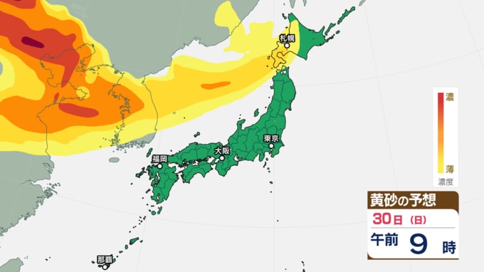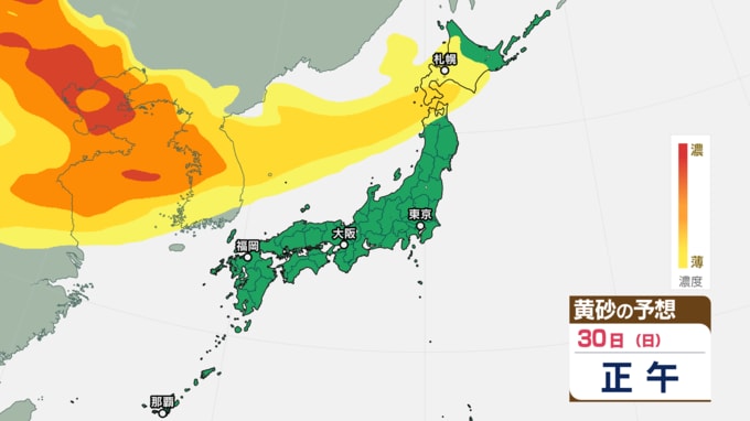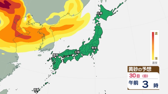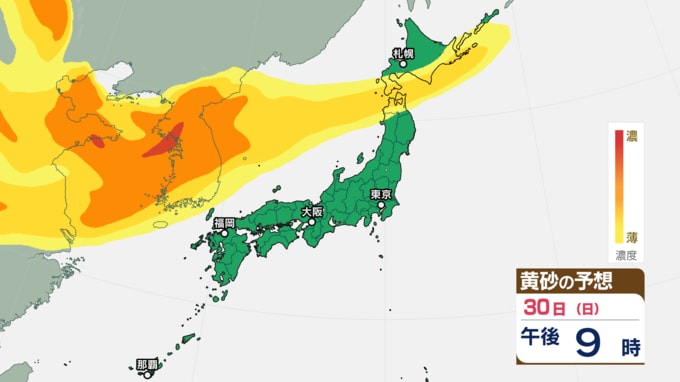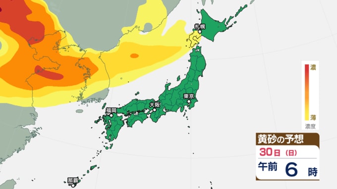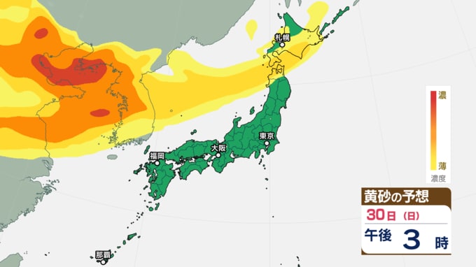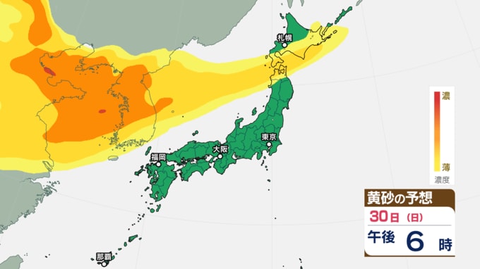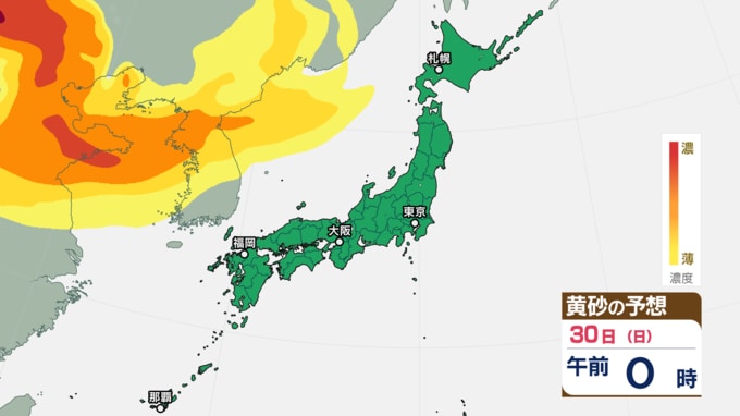 30日(日)の黄砂のシミュレーションでは、【画像㉓~㉚】のとおりです。