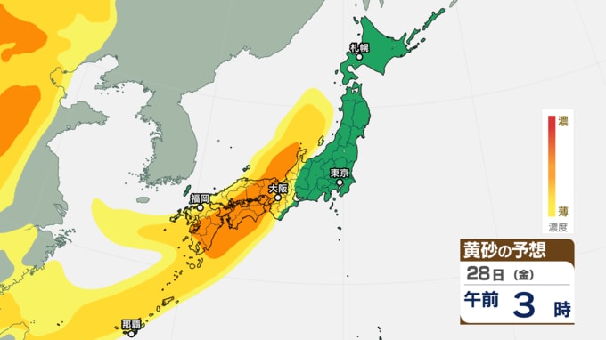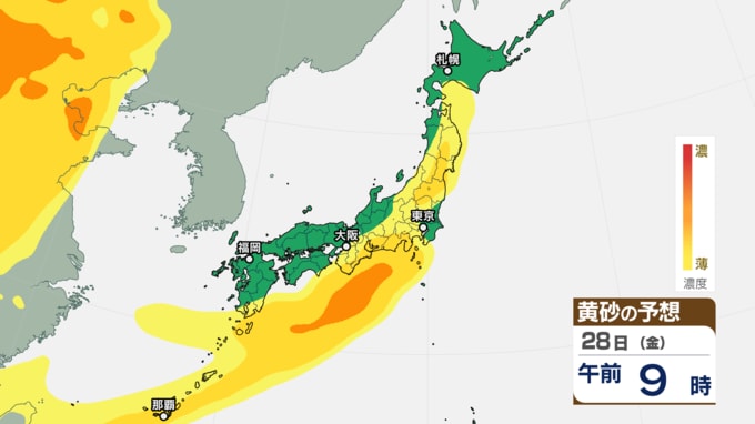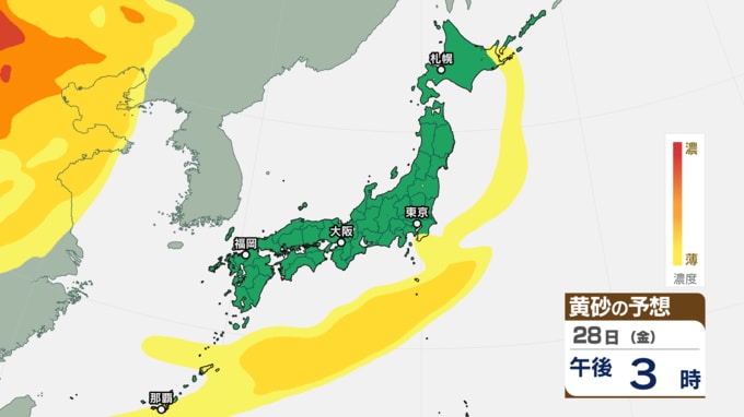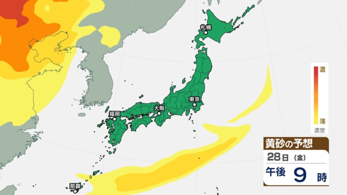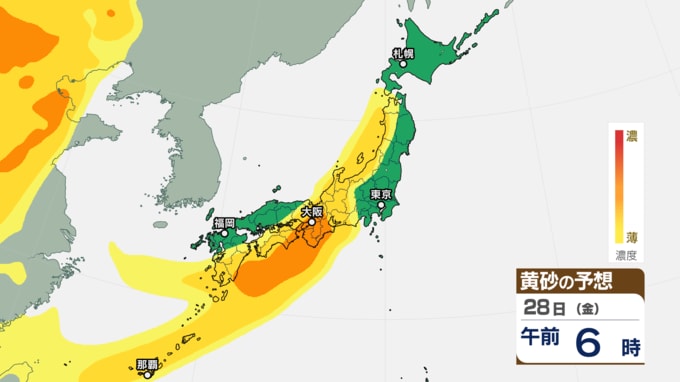 【黄砂情報】きょう(27日)午後から日本列島に黄砂飛来の見込み あす(28日)は東京にも飛来予測 27日~30日にかけての黄砂シミュレーション【気象庁 27日午前8時半更新】 RSK山陽放送 2025年11月27日(木) 08:30 国内 28日(金)の黄砂はどうなる? 28日(木)の黄砂のシミュレーションは、【画像⑦~】のとおりです。 【画像⑦】 【画像⑧】 【画像⑨】 【画像⑩】 【画像⑪】 【画像⑫】 【画像⑬】 【画像⑭】 【画像⑮】