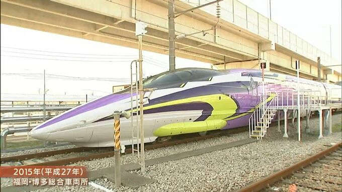 次は…500系新幹線に、特徴ある紫色のデザイン。アニメ「エヴァンゲリオン」をテーマにした新幹線「500TYPE(タイプ)EVA(エヴァ)」の運行が始まったのは2015年の11月でした。