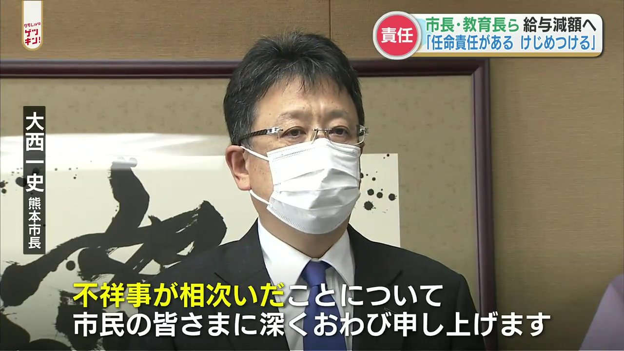 また、この約1時間半後、熊本市の大西市長は教育長の任命権者として責任を取るとしました。