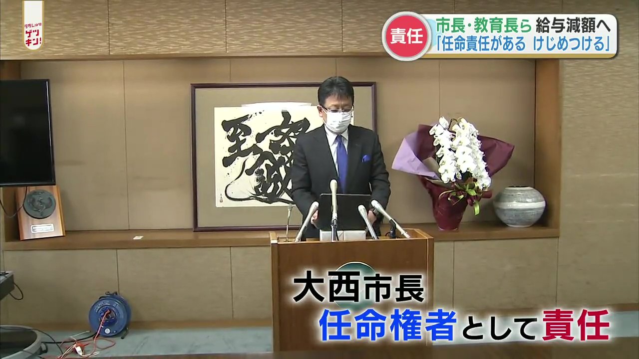 このように謝罪し、男子生徒が自殺した問題に加え市内の2つの小学校で盗撮やわいせつ行為が起きた責任を取るとし自らと遠藤教育長、そして副市長の給与を減額する条例案を市議会に提出するとしました。
