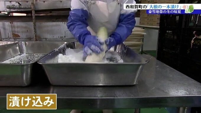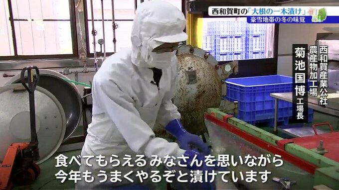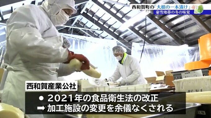 西和賀産業公社は2011年から自社の畑で栽培したダイコンを使った一本漬けを販売していますが、2021年の食品衛生法の改正で漬物の製造が営業許可制になったことで、加工施設の変更を余儀なくされました。