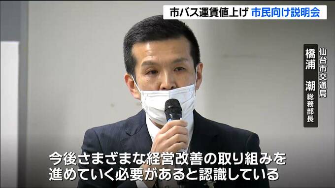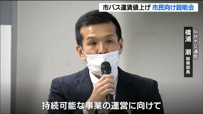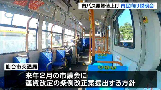 路線バスの運行について、厳しい経営状況が続く仙台市交通局は11月26日の夜、市バスの運賃引き上げに関し、初めて市民向けの説明会を開きました。会場では値上げに対し厳しい声も上がりました。