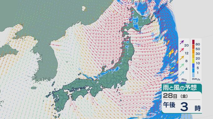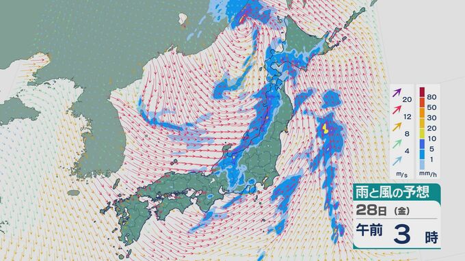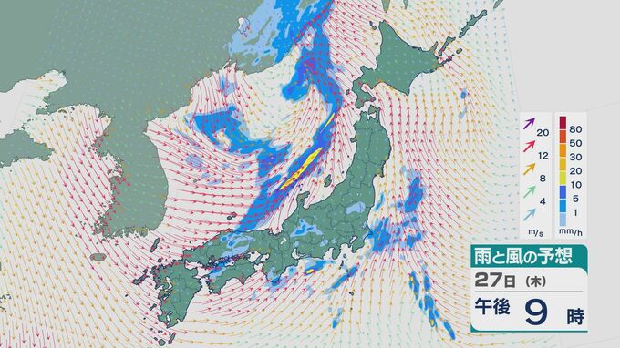 寒冷前線の通過で天気が急変 日本海を低気圧が発達しながら進み北陸や東北・北海道などでは落雷や急な強い雨に注意を 雨と風シミュレーション 北陸放送 2025年11月27日(木) 13:31 国内 27日の雨と風の予想ですが、夜遅くから寒冷前線の通過にともない北陸や東北の日本海側で発達した雨雲がかかかりそうです。沿岸部では風も強まるでしょう。