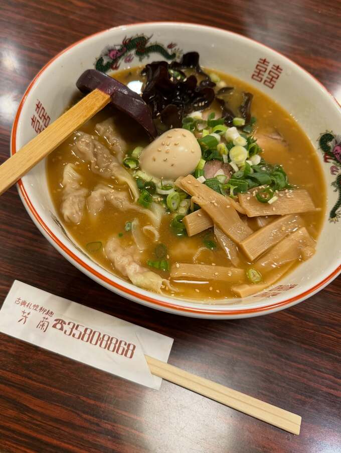 穂川さんは茶色のオフショルダーのニットを着用し、店内でラーメンを食べる食事風景の写真を投稿。「なんとなく懐かしさを感じる味噌ラーメン 芳蘭に行ってきたよー!」と報告しています。