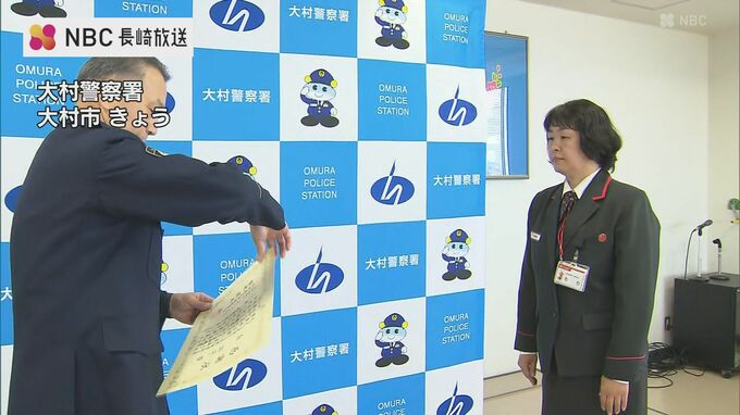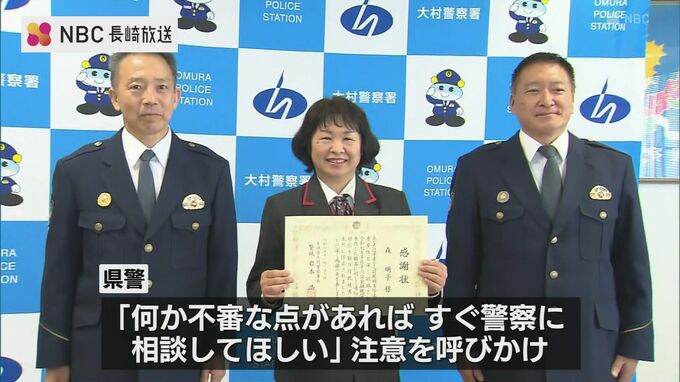 ニセ電話詐欺の被害を未然に防いだとして大村市の郵便局員の女性に27日、警察から感謝状が贈られました。