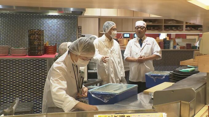 白山市のもりもり寿しイオンモール白山店には石川中央保健所の職員2人が訪れ、調理器具の拭き取り検査や、食品の調理、管理方法などを聞き取りました。