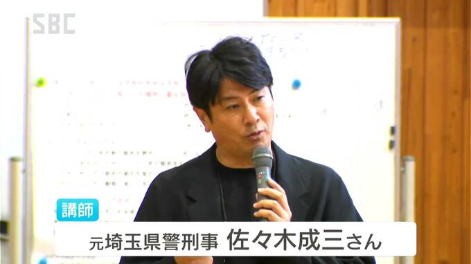 松本市の開成中学校では事件のコメンテーターなども務める埼玉県警の元刑事の佐々木成三さんがSNS犯罪に巻き込まれない、加担しないために何ができるかおよそ300人の生徒に語りかけました。