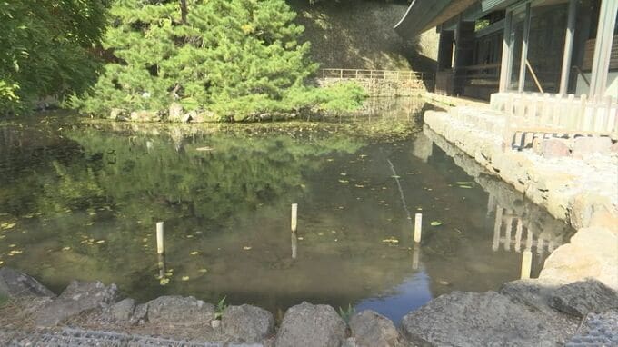 おうすけ君、最初は神楽殿のしめ縄の下にいたそうですが、何らかの拍子で池にダイブ。その様子を目撃した石橋さんがダッシュで駆けつけ、池から上がれなくなっていたところを救出したということです。