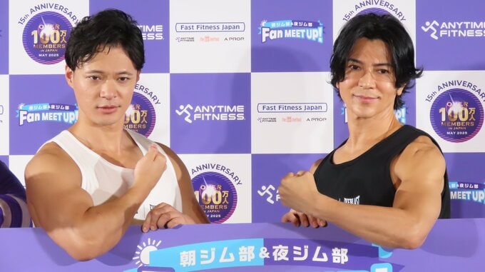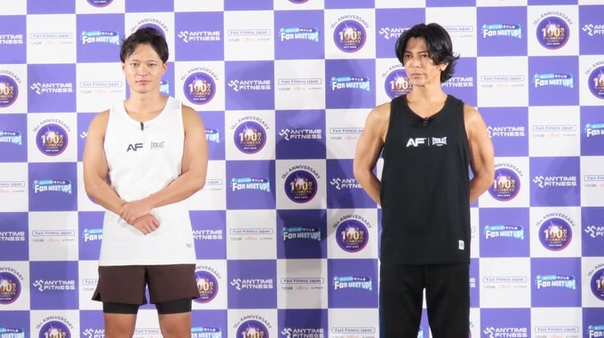 ともに抜群の筋肉を誇る武田真治さんと東京ホテイソンのショーゴさんが、フィットネスジム「ANYTIME FITNESS」を盛り上げる「エニタイムイヤー」の一環として、ファンイベント「エニタイムフィットネス 朝ジム部&夜ジム部 Fan MEET UP!」に登場しました。
