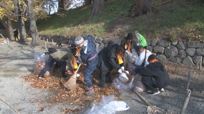 福島県会津若松市の鶴ヶ城で、落ち葉を集める清掃活動が行われました。落ち葉は濠(ほり)にたまって、水質が悪化する原因の1つとなっていて、関係者は活動を通じて、きれいな環境を守りたいと考えています。