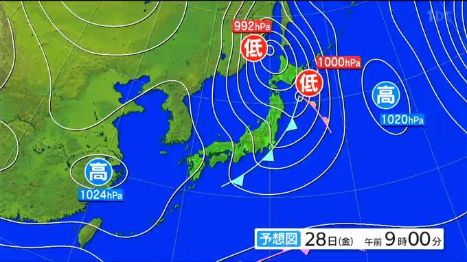 最高気温は13℃から14℃と、27日とあまり変わらず、平年よりやや高い見込みです。