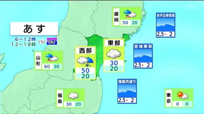 東部では晴れ間がある一方で、にわか雨の可能性があります。西部では昼前まで雨が降ったり止んだりで、雷雨となるおそれもあります。西寄りの風が強まり、東部では昼前から夜遅くにかけて強風に注意が必要です。予想よりも等圧線の間隔が狭くなった場合は、東部の陸上に暴風警報が出る可能性もあります。