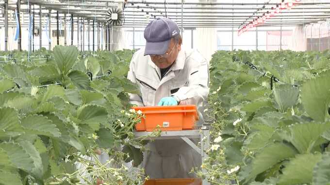 ブランドイチゴ「かおり野」。極早生品種で11月ごろに出荷が出来ますが、さらに出荷を早めようと2024年、九州電力がオール電化による促成栽培を始めました。