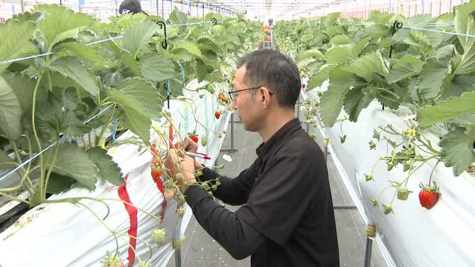 「AI技術を活用してイチゴを摘み取る時期を予測したり、粘着シートについている害虫を画像認識で増加状況を把握することで農薬の散布の軽減を行っている」