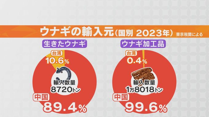 海部教授によると、現在日本で流通するウナギの大半は、海外からの輸入に依存していて、輸入元は生きたウナギは約9割が中国。加工品については、ほとんどが中国です。
