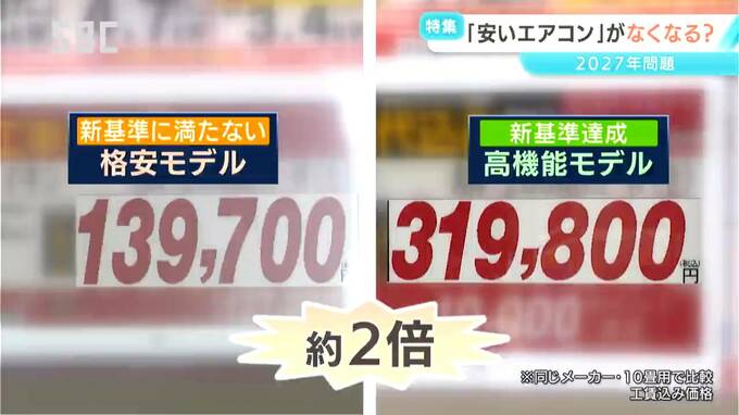 2027年度の基準に満たないいわゆる格安モデルは、工賃込みで「13万9700円」なのに対し、基準を満たした高機能のモデルは、「31万9800円」。
