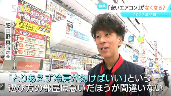 肥田野店長は今後、安いエアコンの「駆け込み需要」があると予想する一方、リビングや寝室などひんぱんに使う場所では、省エネモデルの方が結果的にお得になる場合もあると話します。