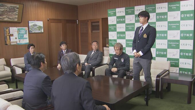 山口県下松市出身の林晴己選手が、鹿島アントラーズへの入団を下松市長に報告しました。