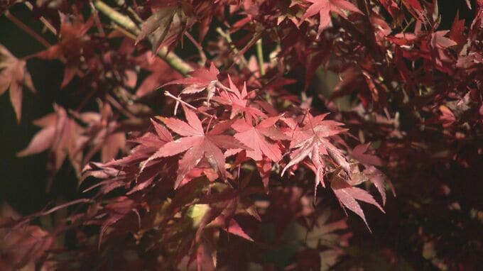 鳥取市にある寺の庭園で紅葉のライトアップが始まり、幻想的な景色が広がっています。