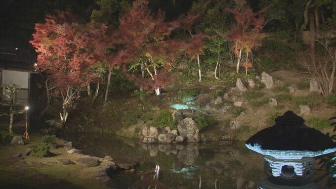 興禅寺の庭園の紅葉ライトアップは午後5時から8時半までで、30日まで開催されます。