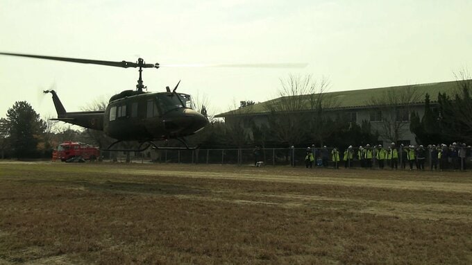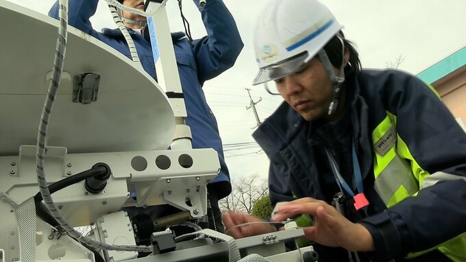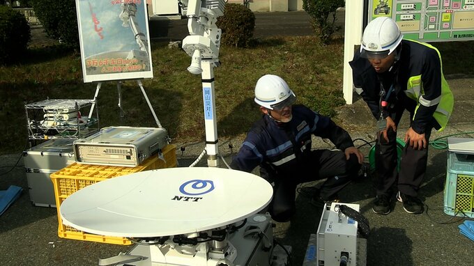 訓練には、NTT西日本岡山支店の従業員と陸上自衛隊の約50人が参加しました。自衛隊がヘリコプターで通信機材やNTTの技術者を搬送。インフラが壊れた被災地でも衛星を通じて電話やインターネットが使える拠点を早急に設営できるよう連携を確かめていました。