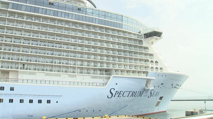 27日朝、境港にやって来たのは香港からの大型クルーズ客船「スペクトラム・オブ・ザ・シーズ」。総トン数は16万9379トン、全長はおよそ347メートルにもおよびます。