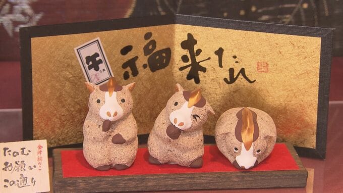 今年はおよそ10種類が用意されていて、中でも桜をあしらった華やかな白い午(うま)の人形が人気です。また、店によりますと、TUFで放送しているドラマ「ザ・ロイヤルファミリー」の影響もあってか、例年より売れ行きはいいということです。