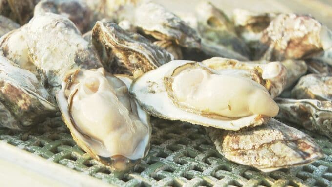 白く輝く、プリップリな「カキ」。さっぱりとした味と歯ごたえが特徴で山口市秋穂地区の新たな特産品です。