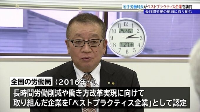 長時間労働の削減などに積極的に取り組んだ企業を国が認定する「ベストプラクティス企業」に、2025年度選ばれた企業を岩手労働局長が訪問しました。